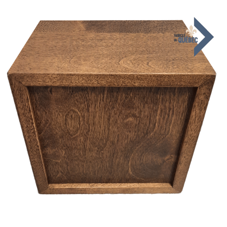 Handcrafted by skilled Quebec artisans, this simple wooden funeral urn offers a simple, elegant way to honor the memory of a loved one. Its sleek, customizable design allows you to pay tribute to your loved one in a unique, respectful way.