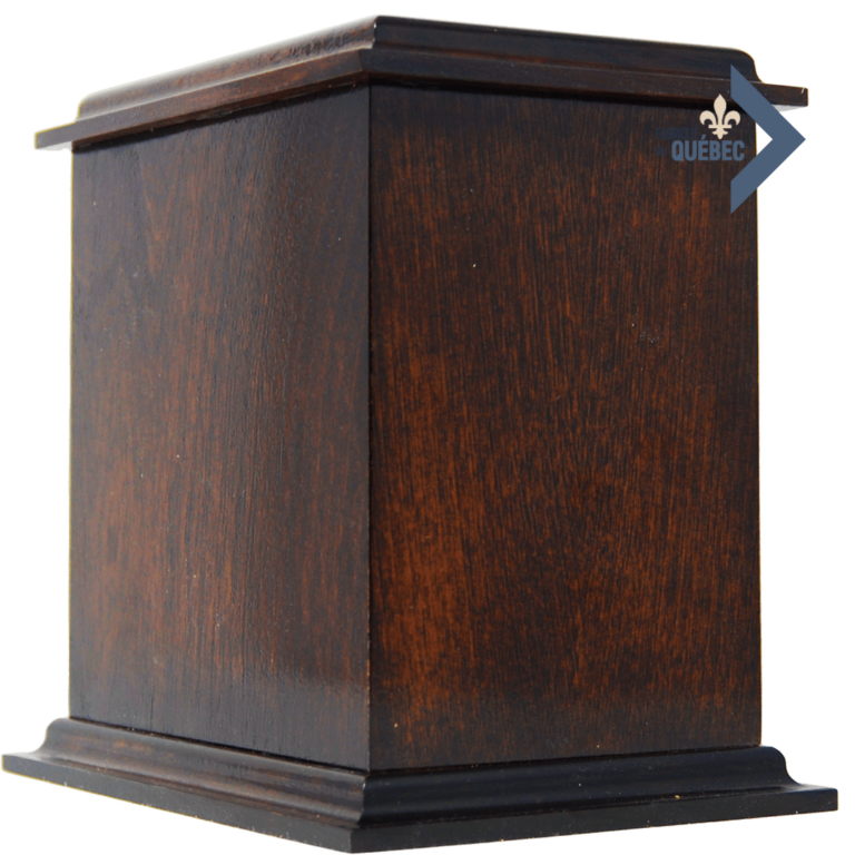 Fabriquée à la main par des artisans québécois qualifiés, cette urne funéraire simple en bois offre un moyen simple et élégant d’honorer la mémoire d’un être cher. Sa conception épurée et personnalisable permet de rendre hommage à votre proche de manière unique et respectueuse.